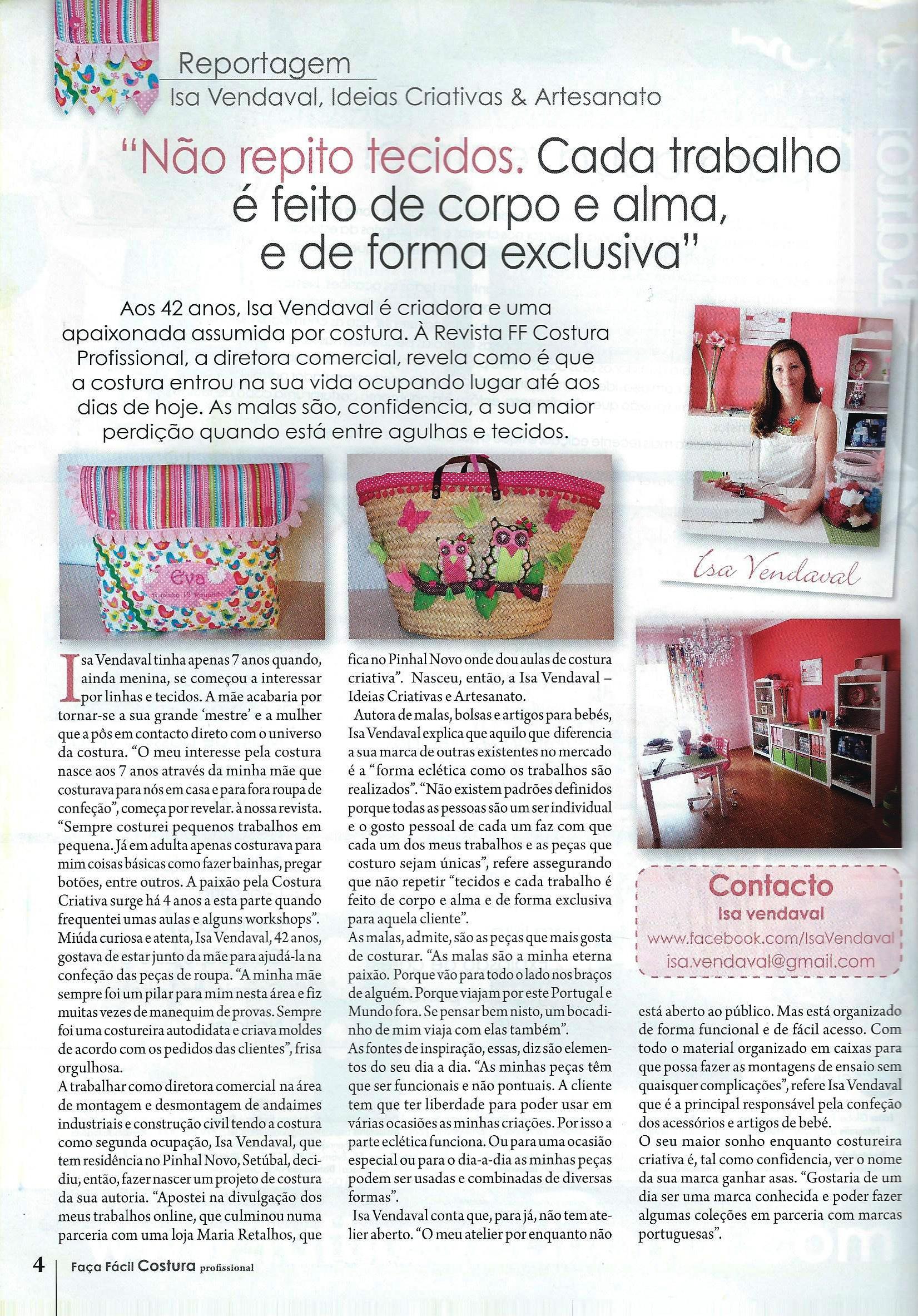 A convite da editora TUTTIREV / GLOBAL PRESS, a ISA VENDAVAL – Ideias Criativas & Artesanato, participou na Edição Nº 27, com diversos projectos de criação própria, onde pode dar a conhecer a todos, as peças de autor que projecta e executa.